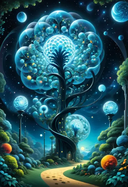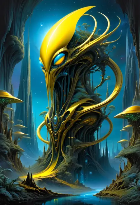 上方画廊展示了部分使用此 LoRA 生成的图像。每一张都捕捉了该模型擅长的超现实与未来主义的独特融合。无论是外星文明在有机-机械结构的光芒中繁荣,还是机器人守卫者守护着生物机械森林,可能性无穷无尽。