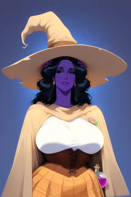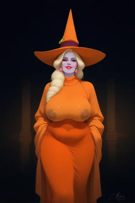 魔女やさまざまな魔法使いの女性を描いた、明るいピンアップアート。