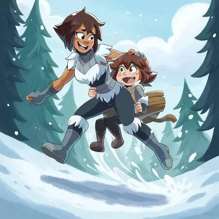 Kaya, kaya (Brawlhalla), brown hair, dark skin, armored shoulders, winter clothes,