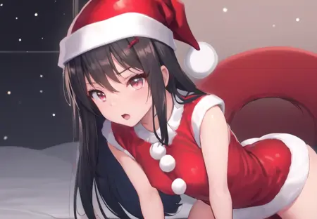 Prompts: red outfit, santa hat