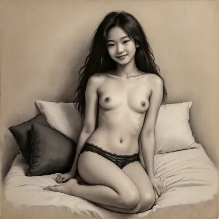 Monochrome charcoal nude drawings possess a timeless and evocative beauty, rooted in their simplicity and emotional depth. The stark black-and-white palette strips the subject down to its essence, allowing the viewer to focus on form, texture, and the subtle interplay of light and shadow.