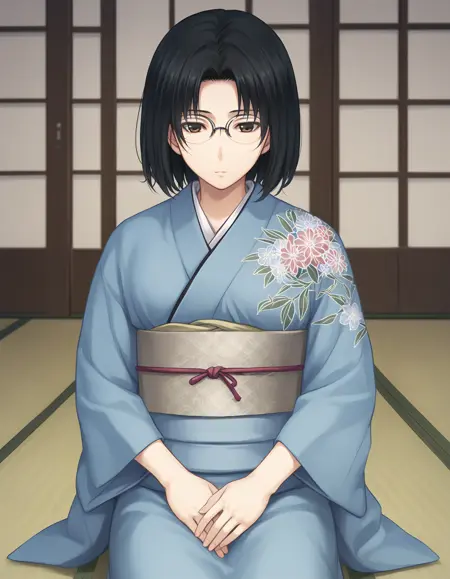 futami yuu, black hair, medium hair, brown eyes, upper-rim eyewear