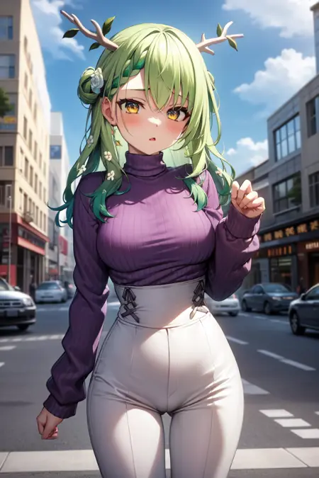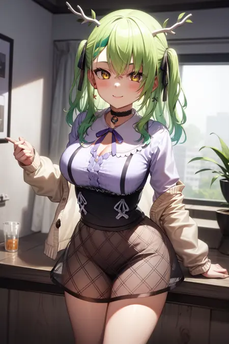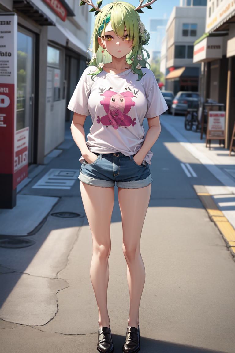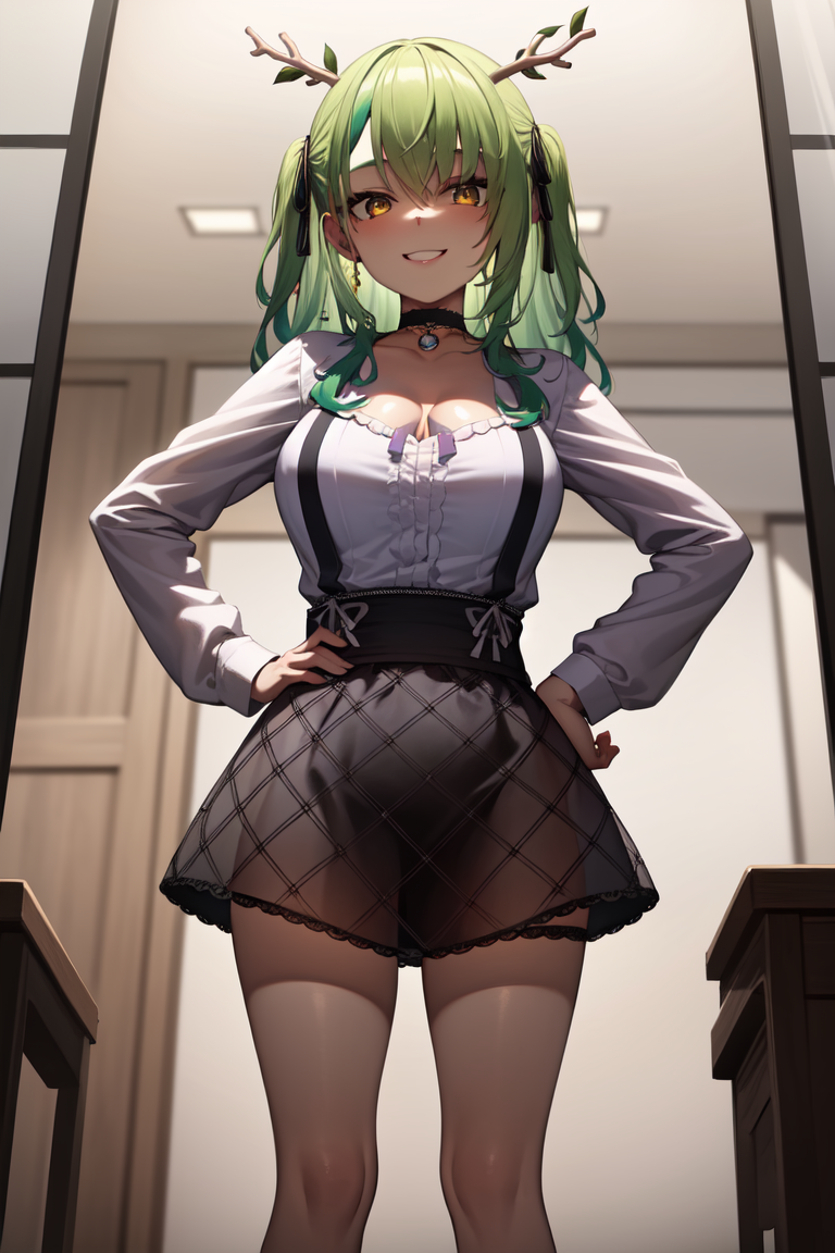 You might want to add "see-through, pantyhose" to negatives. No clue why it wants to draw her with a pantyhose.