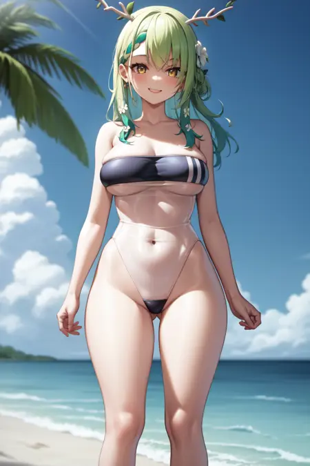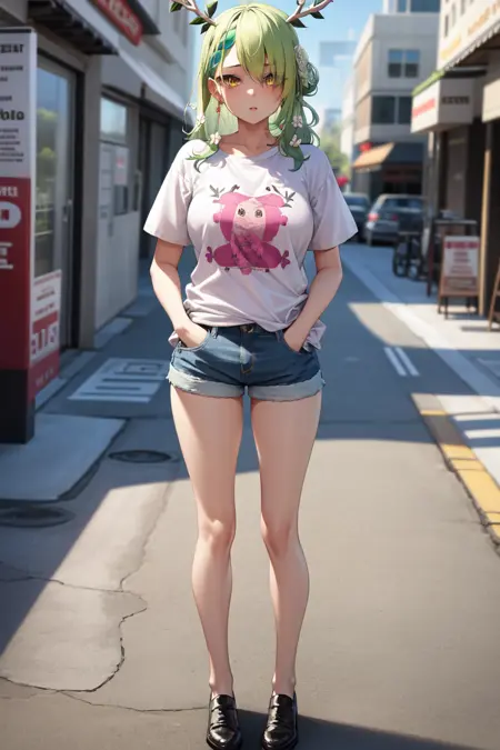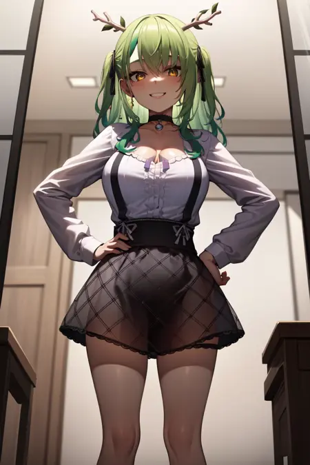 你或许想在负面提示中添加 "透视, 连裤袜"。我不明白为什么它总想给她画上连裤袜。
