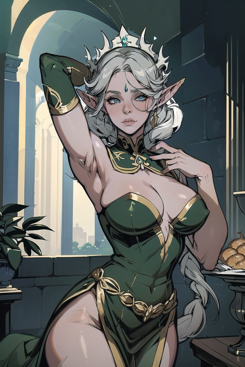 壮大な衣装を纏った、ディテールが細かくセルシャドウ処理されたキャラクター。
