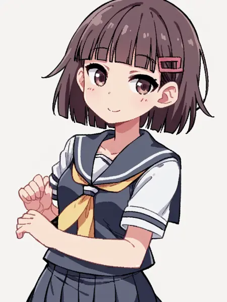 赤里 SM,棕发,中发,齐刘海,发夹,棕眼,小胸部,