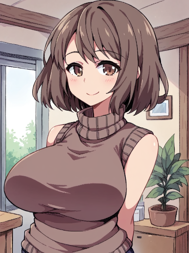 露珠 SM,棕发,中发,棕眼,大胸部,