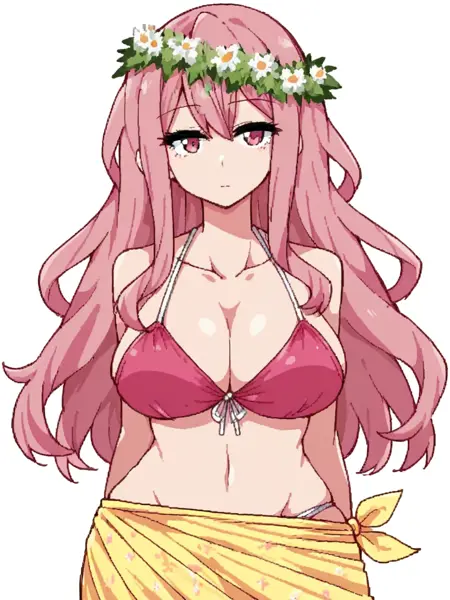 水月 SM,粉发,长发,粉眼,大胸部,花环,