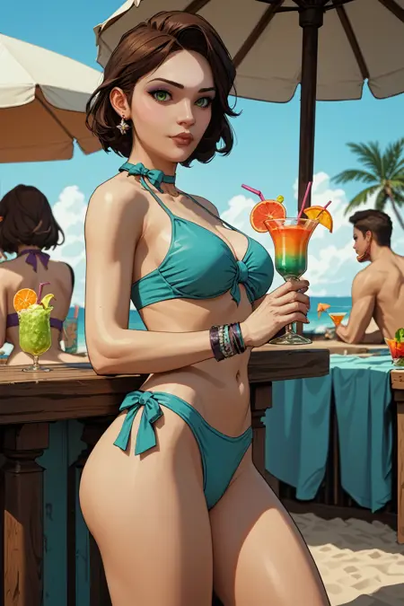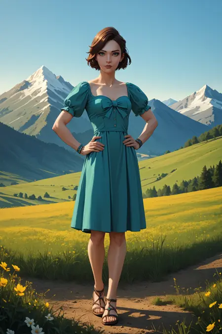 WolfFaith, 1girl, brown hair, green eyes, short hair, bow