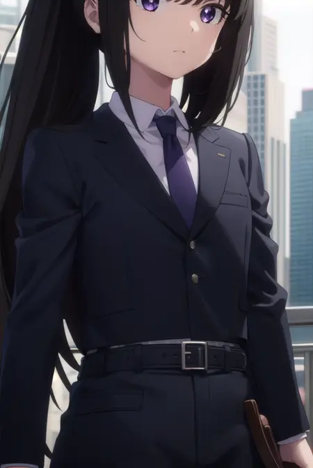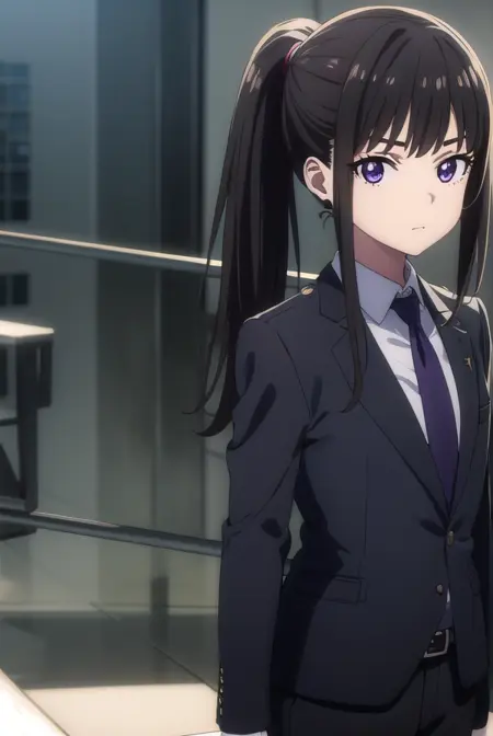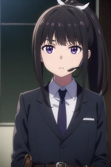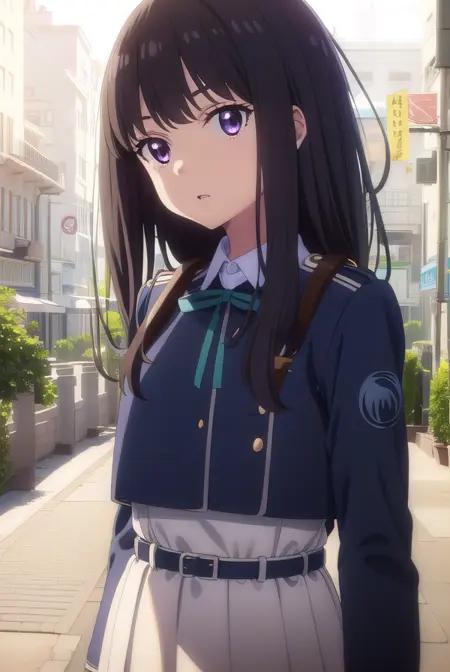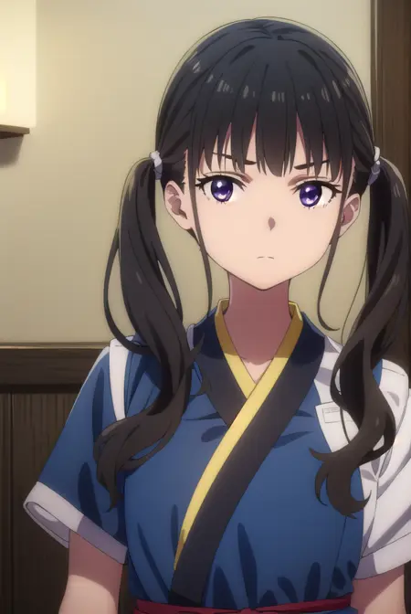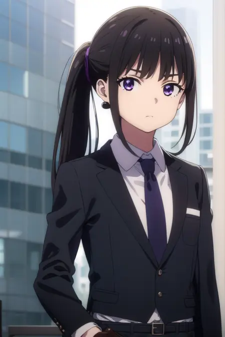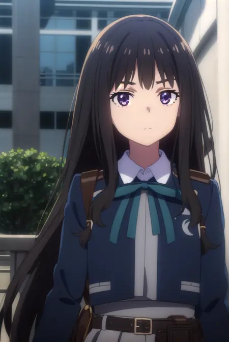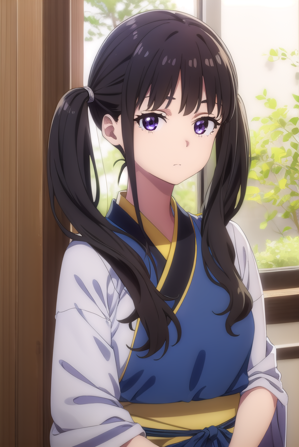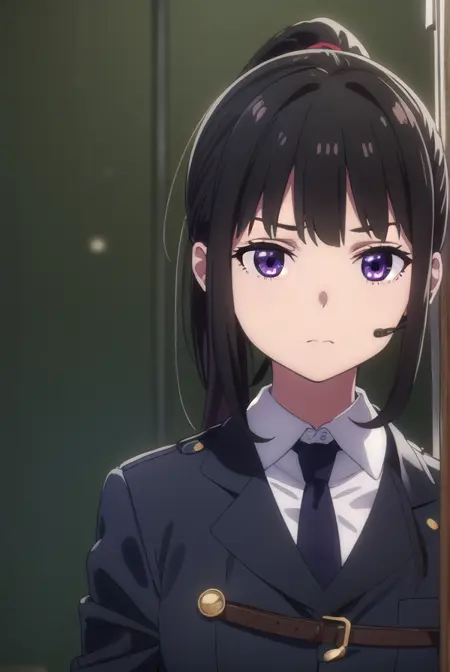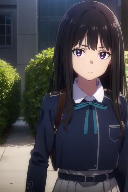 Lycoris: 이노우에 타키나, 긴 머리, 앞머리, 검은 머리, (보라색 눈:1.2),