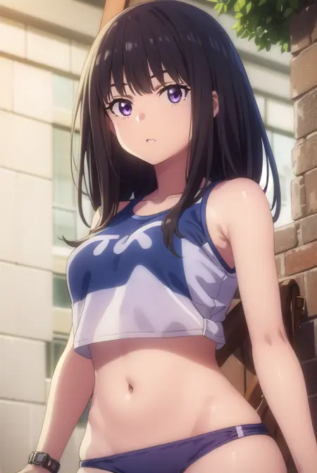 언더커버: 이노우에 타키나, 긴 머리, 앞머리, 팔찌머리, 검은 머리, (보라색 눈:1.2),