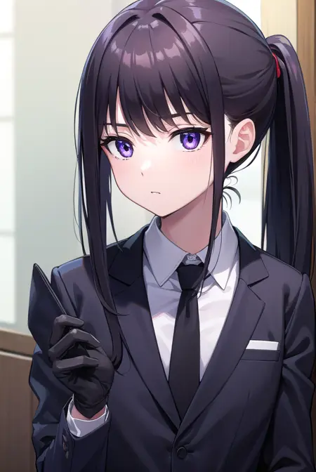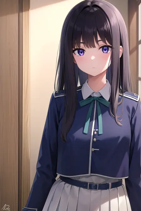 潜伏:inoue takina,长发,刘海,马尾,黑发,(紫色眼睛:1.2),