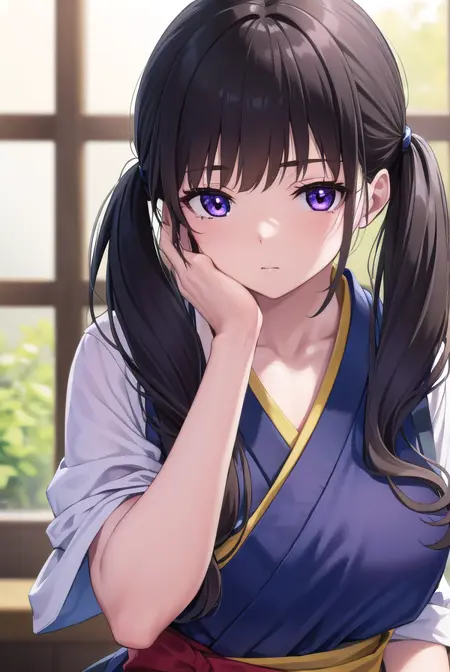 工作:inoue takina,长发,刘海,双马尾,黑发,(紫色眼睛:1.2),