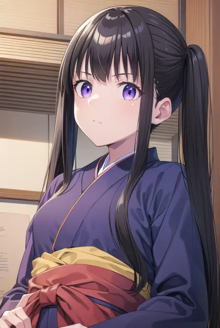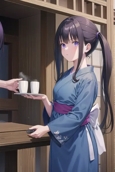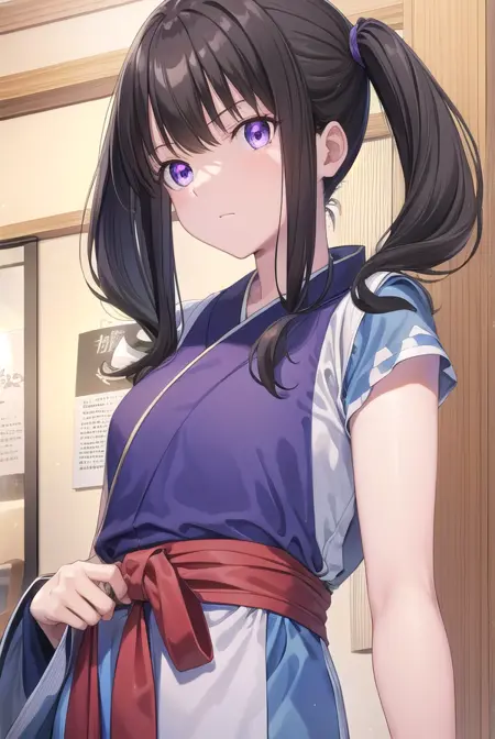 근무 중: 이노우에 타키나, 긴 머리, 앞머리, 더블티ails, 검은 머리, (보라색 눈:1.2),