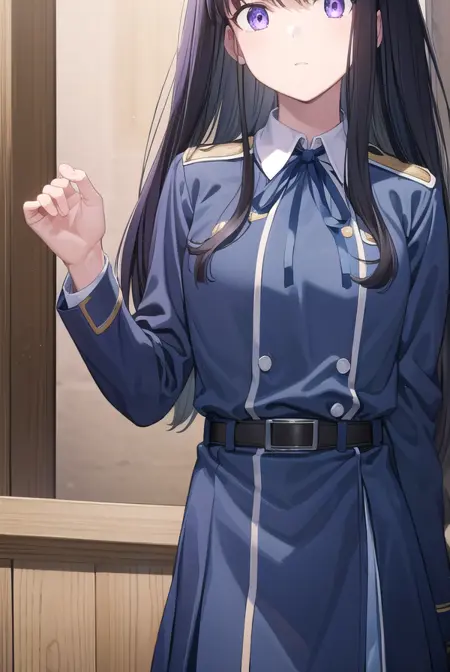 Lycoris: 井上たきな、長い髪、前髪、黒髪、(紫の目:1.2),