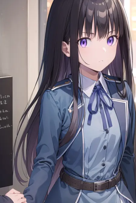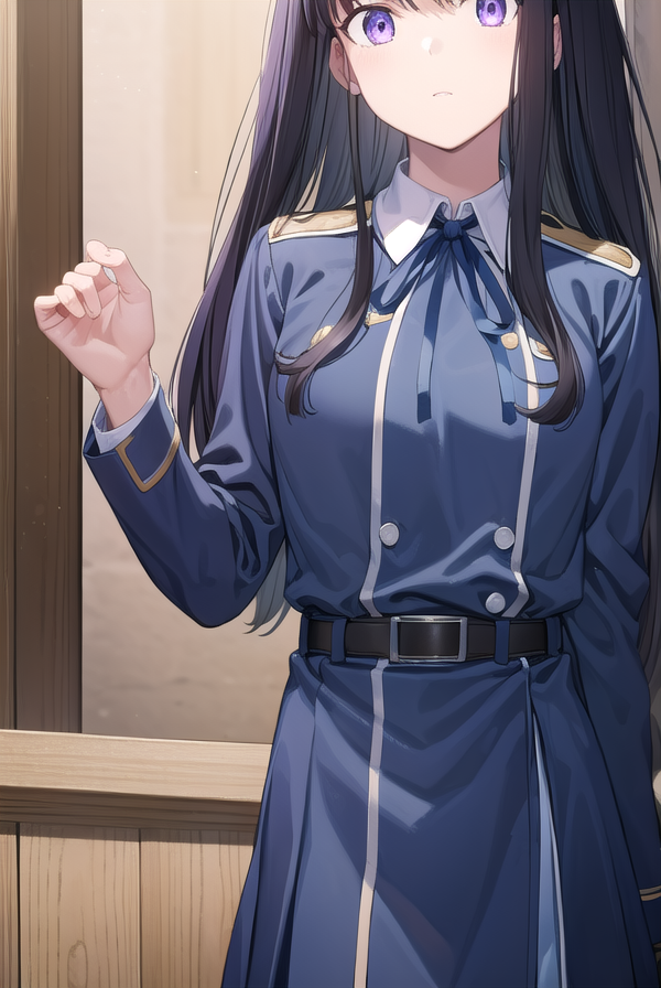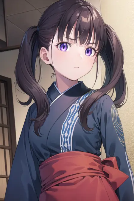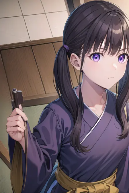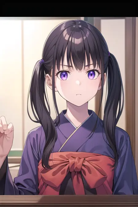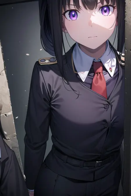 Lycoris: 이노우에 타키나, 긴 머리, 앞머리, 검은 머리, (보라색 눈:1.2),
