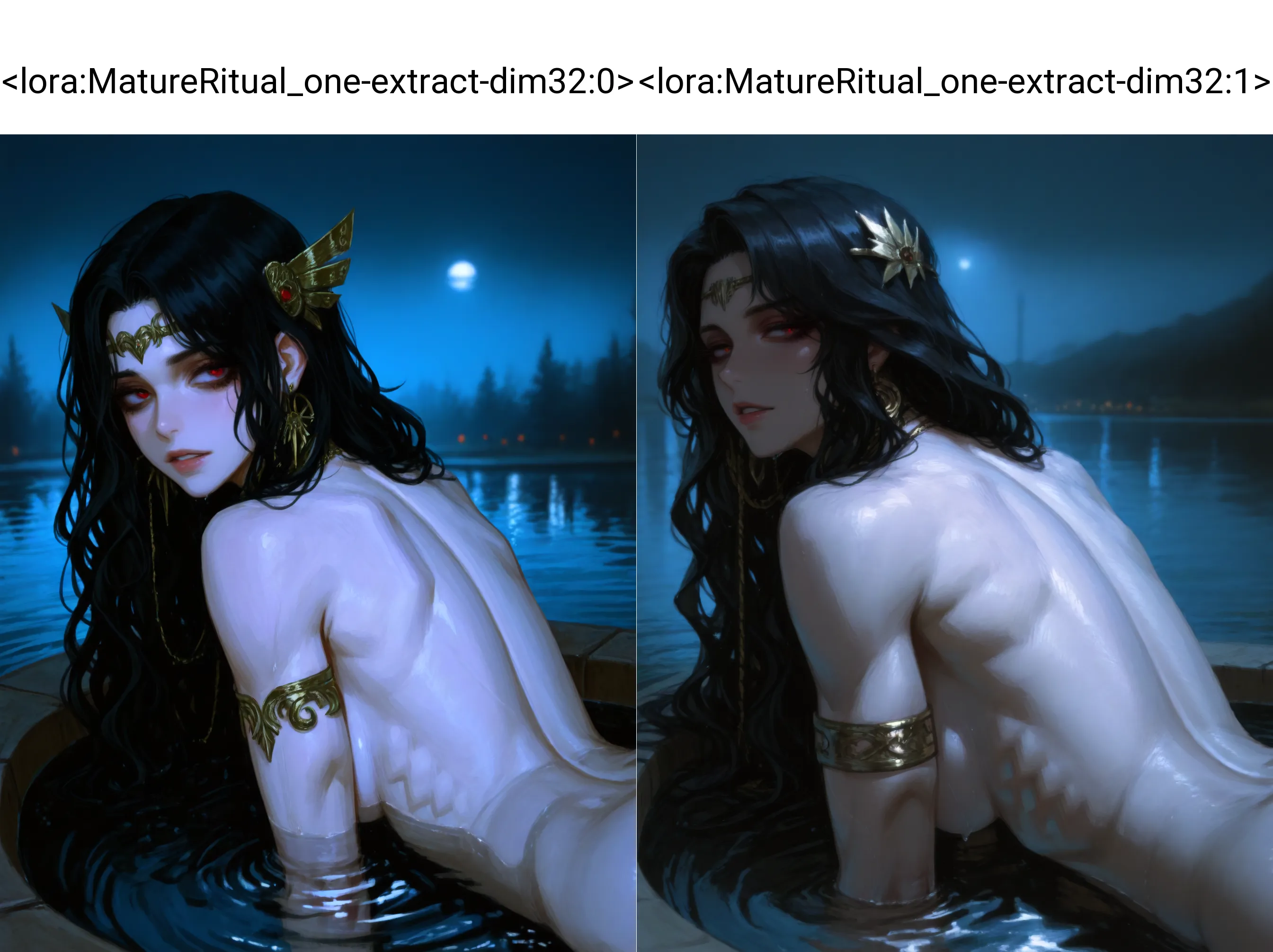 部分跨平台发布的图像可能使用了低于1.0权重的这些LoRA并进行混合。这通常是我的操作方式,也可视为预期的使用方法,但完全取决于你自己的偏好。使用说明应以最适合你工作流程的方式为准。无论如何,所有示例图像均以LyCORIS基础权重1.0、不混合其他LoRA的方式生成,以纯粹展示其自身效果,而非我或其他人的混合结果。
