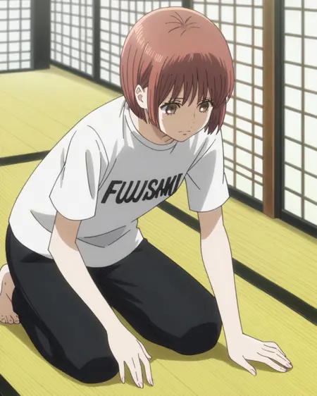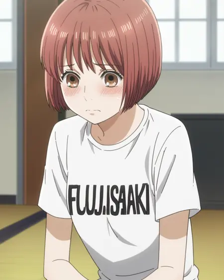 - 1girl, solo, rionyamashiro, 갈색 눈, 갈색 머리, 빨간 머리, 단발, 밥 자르기,