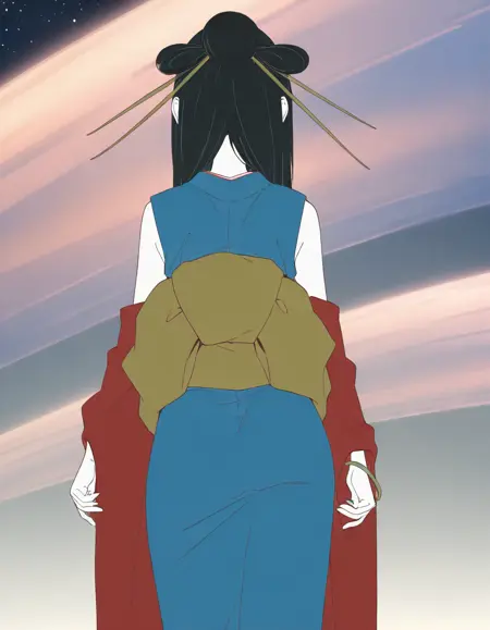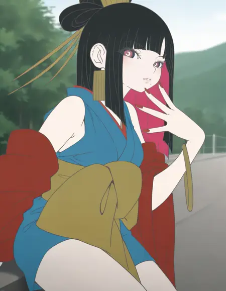 The amount of hair stick will always be different this is a feature of sdxl, the mole on the face will change position sometimes. You can try to get a mole on the left side of the character's body on the collarbone, it's in the dataset and caption, but it will be difficult and unstable I think. hakama short skirt, that's how that white part of the clothes is captioned, it varies quite a bit (as I think in the clip this part also changes so) yellow obi changes its size so much because in the clip the size also changes depending on how far away the character is. That black yellow thing, in the form of a big belt or I don't know what, is also there, but it only appears as an artifact and doesn't have a special caption. blue kimono caption exactly like that, not sure what it might affect, but you should know and like pink eyes, symbol-shaped pupils a character's eyes color cannot be called just pink, but I decided to go with this, if you are trying to achieve a special pink color, or a different symbol in pupils, it is recommended to change the weight of the word and add an additional prompt. The blue kimono sometimes becomes a dress underneath because the original clip does the same thing.
