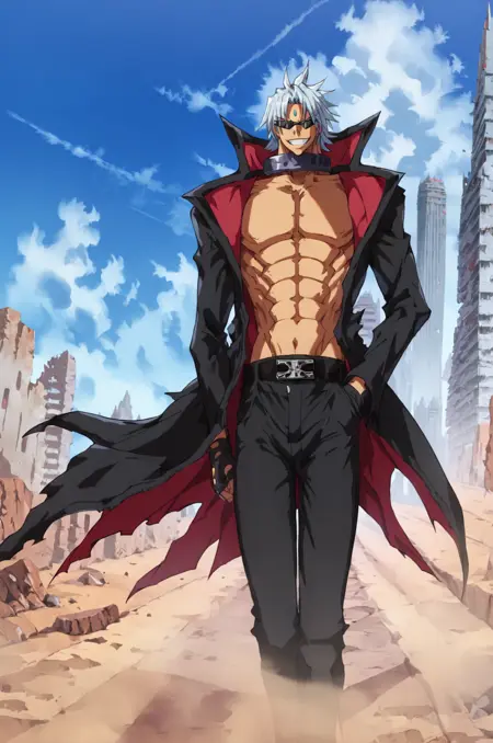 추천 프롬프트: adam_blade_76, 선글라스, 벨트, 오픈된 옷, 흰색 머리, 재킷, 코트, 오픈 코트, 칼라, 빈디, 복근, 근육질, 근육, 긴 재킷, holy crose (네, 제가 잘못 썼습니다).