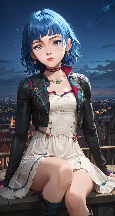 powder_arcane_s2,蓝色头发,短发,刘海,蓝眼睛,眼线,蓝色眼线,珠宝,耳环,妆容,项圈,