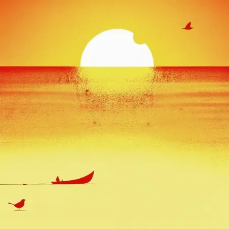 This model's been trained to produce high contrast images dominated by warm colors. Sometimes you'll get heat distortion or film grain or halftone.