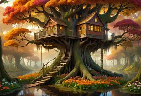 • "a treehouse built into a large tree"