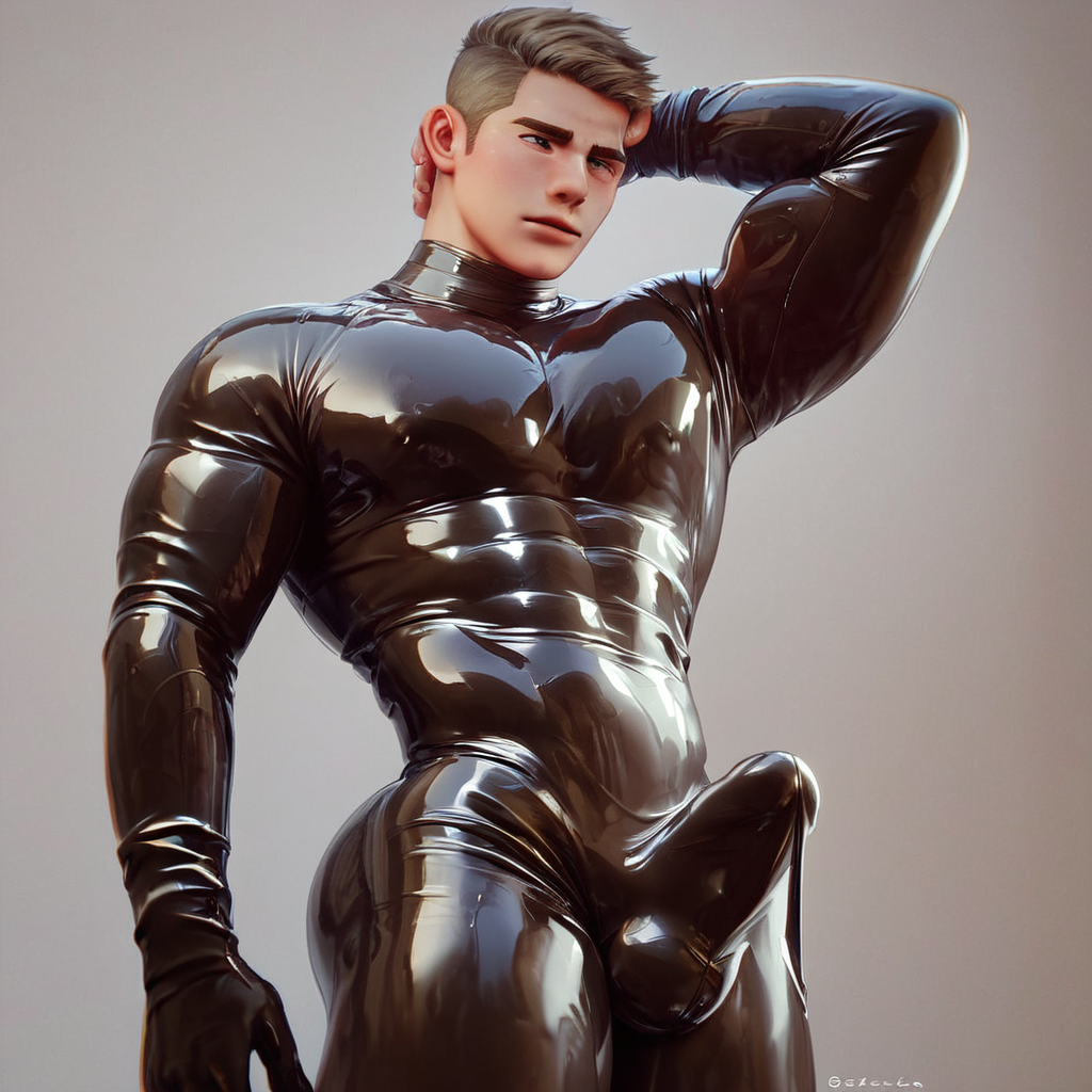 推荐的提示包括标签如 衣服下的勃起隆起,以及 莱卡乳胶紧身衣