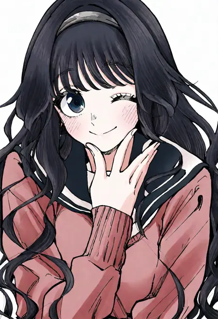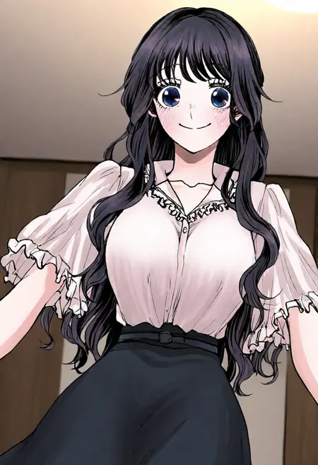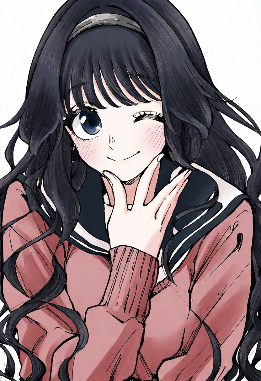 주요 프롬프트: waguri kaoruko, 파란 눈, 다색 눈, 검은 머리,