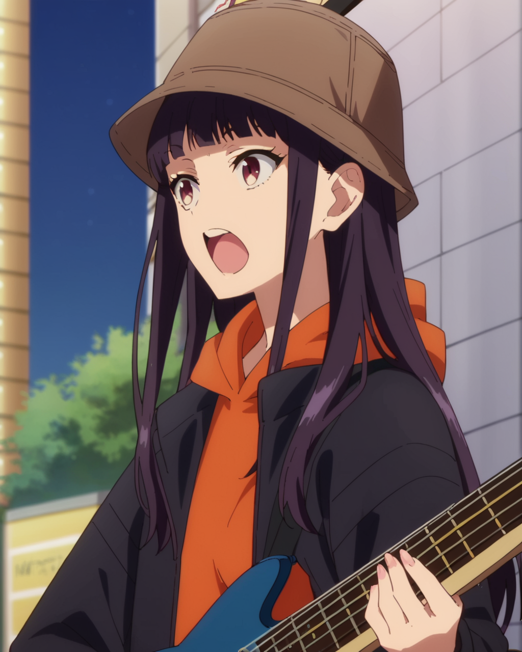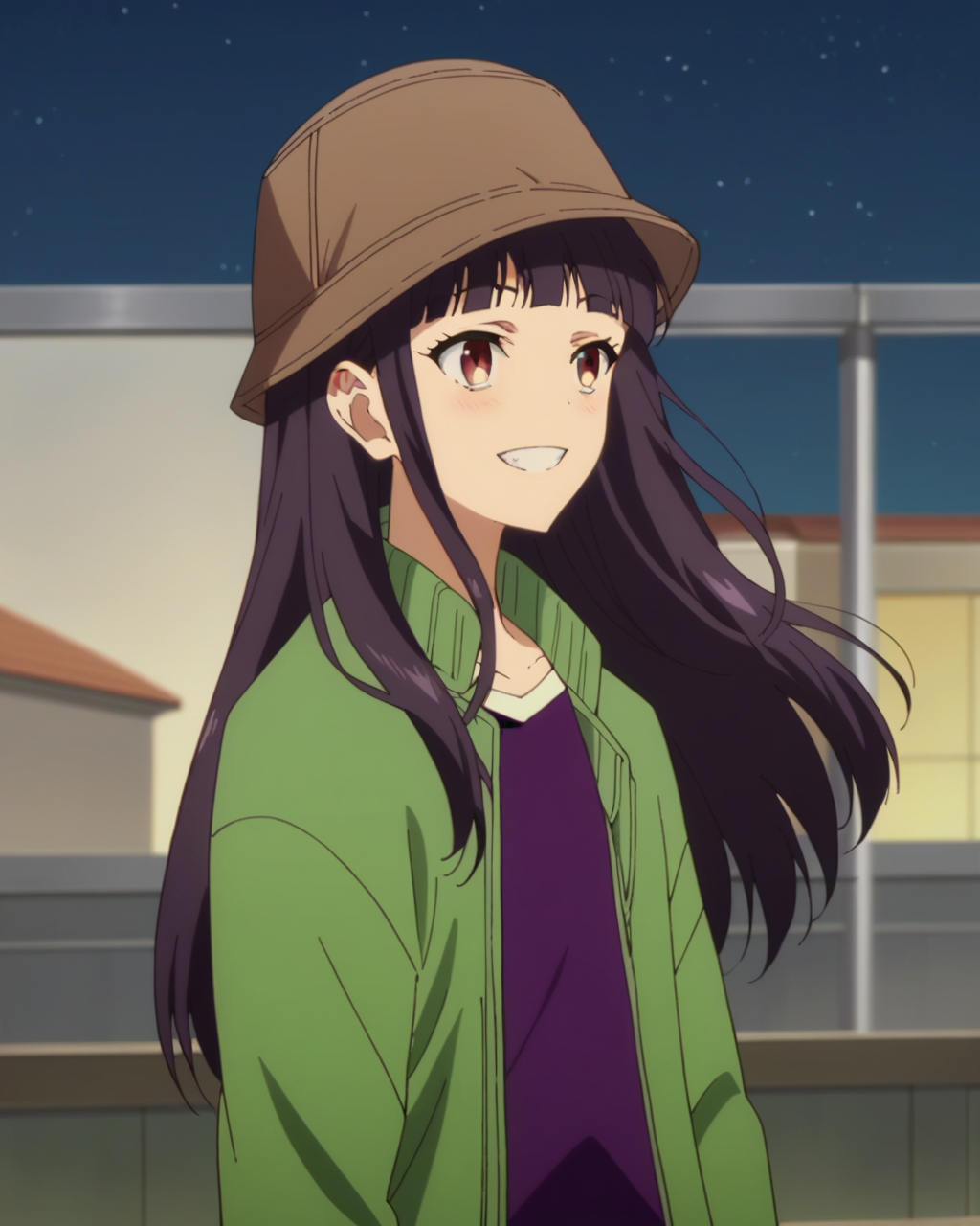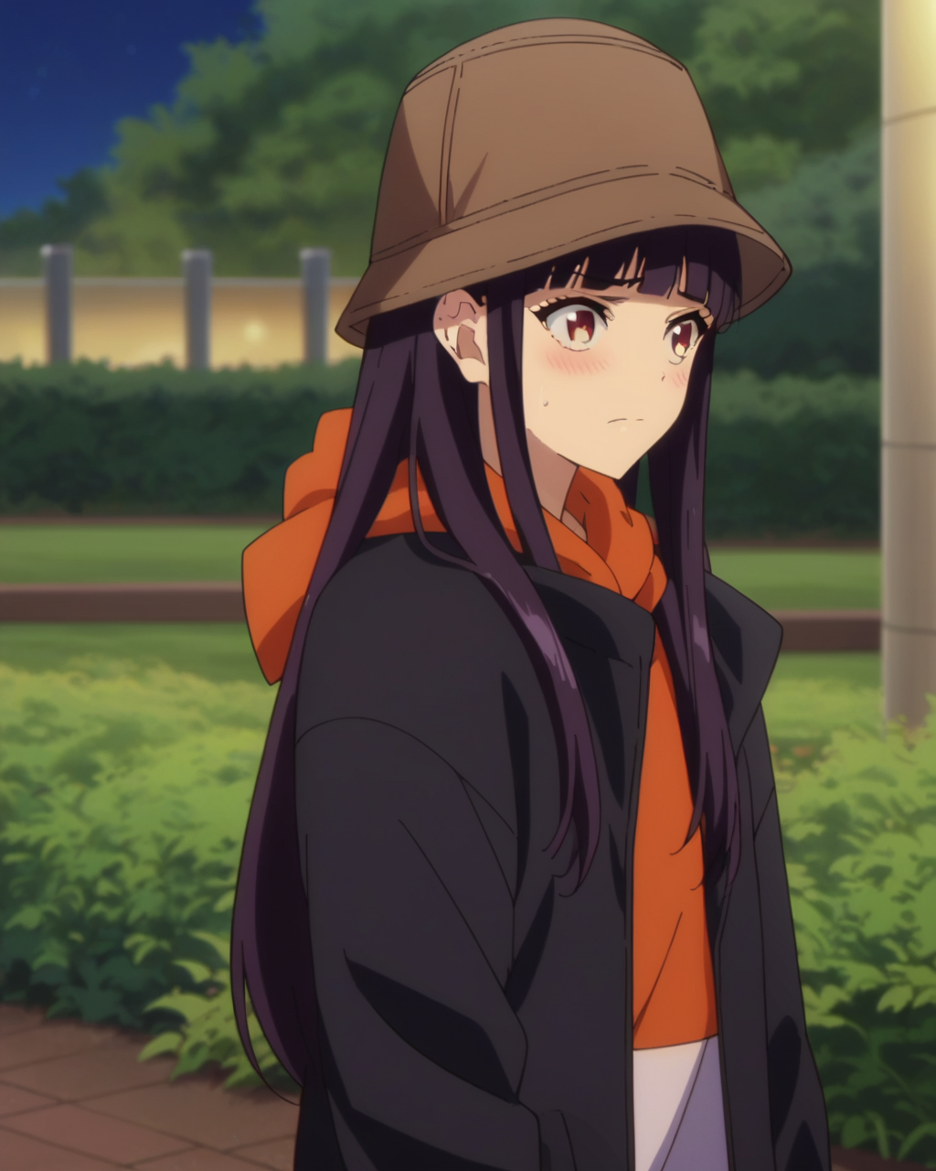 - 1girl,单人,nanamikuon,棕色眼睛,紫色眼睛,黑发,紫发,长发,刘海,