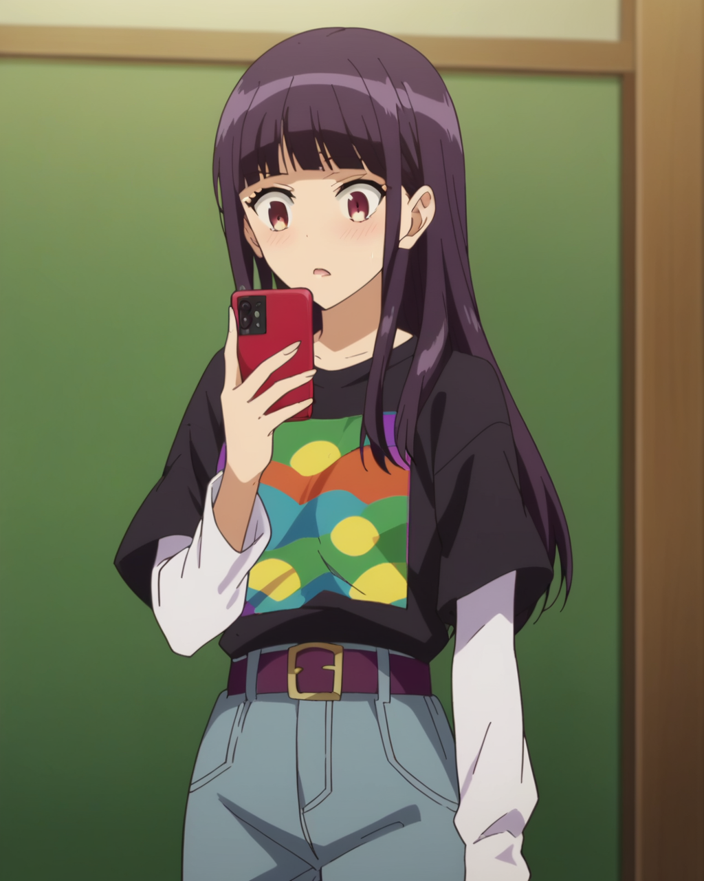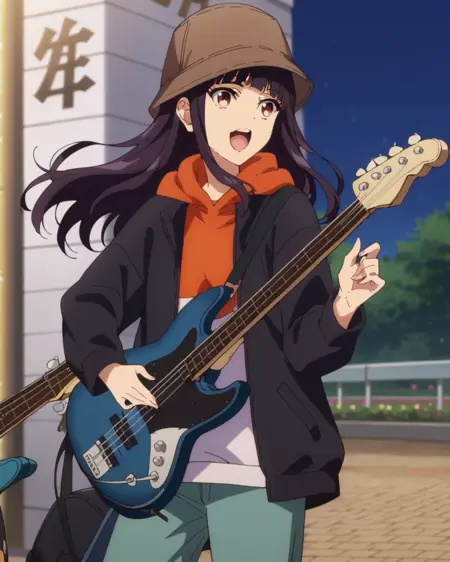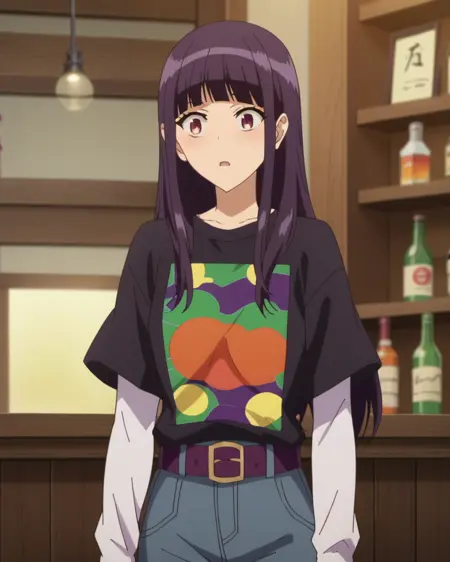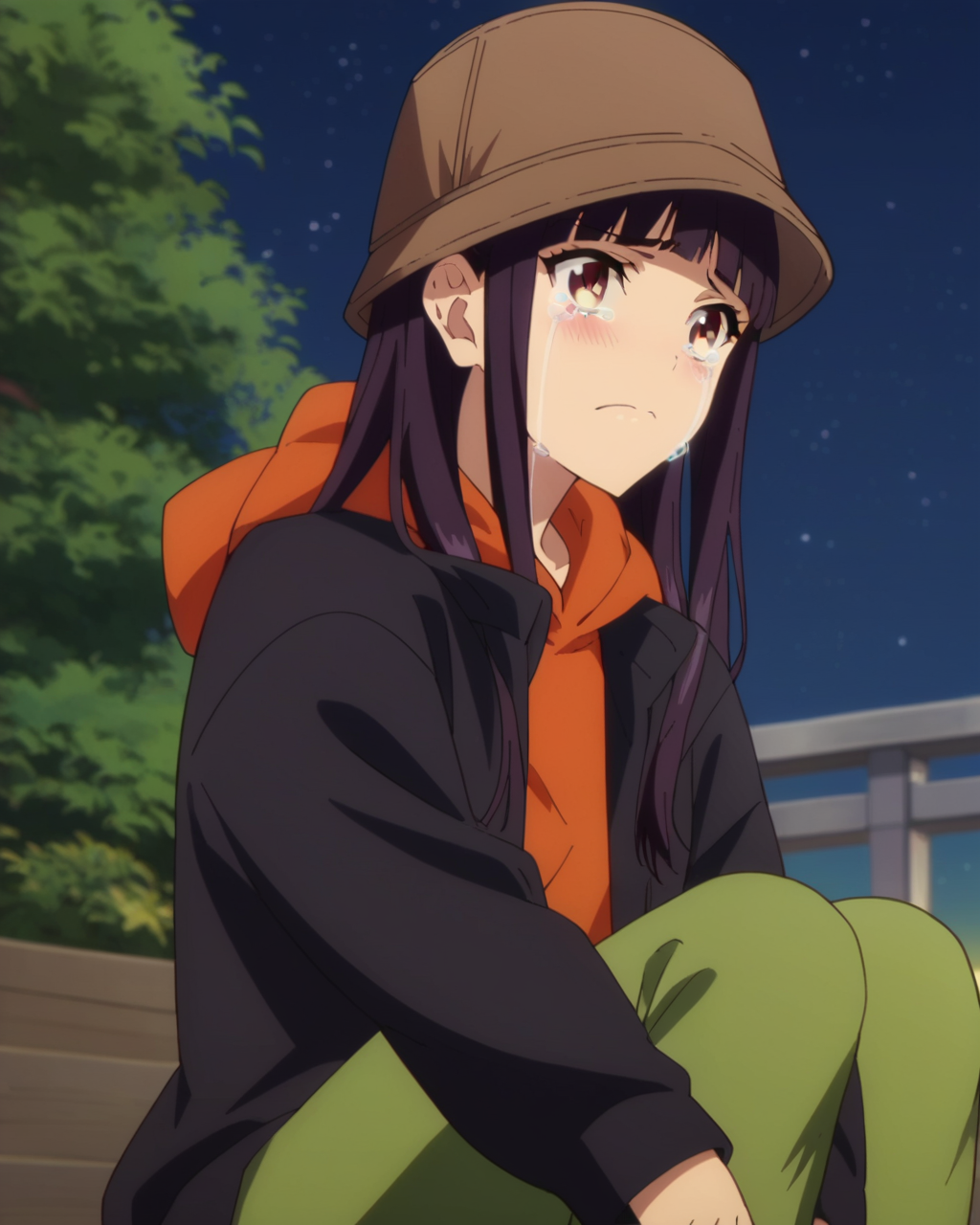 - 1girl,单人,nanamikuon,棕色眼睛,紫色眼睛,黑发,紫发,长发,刘海,