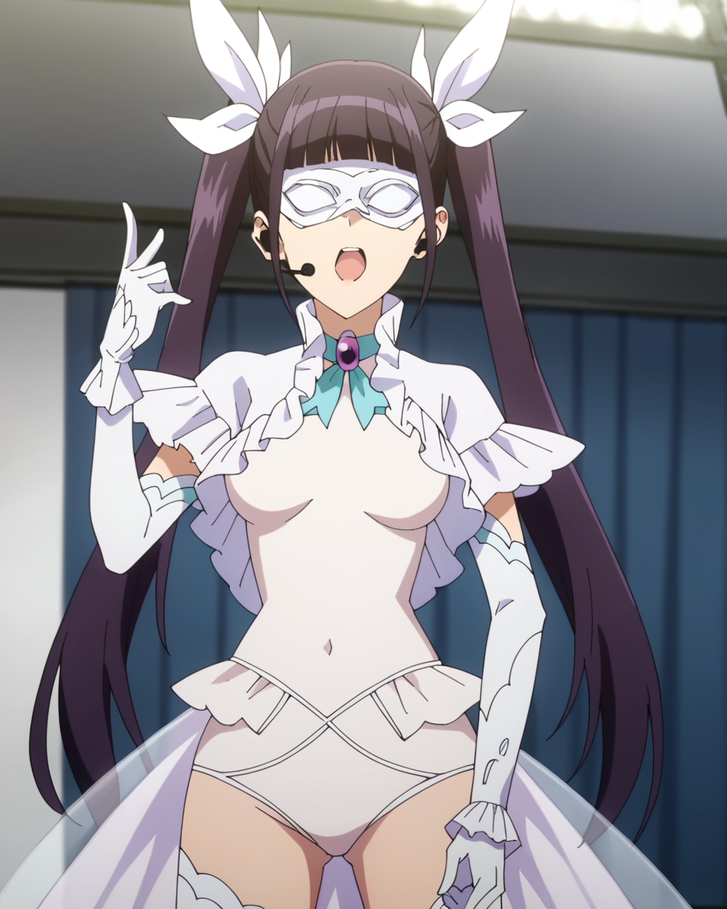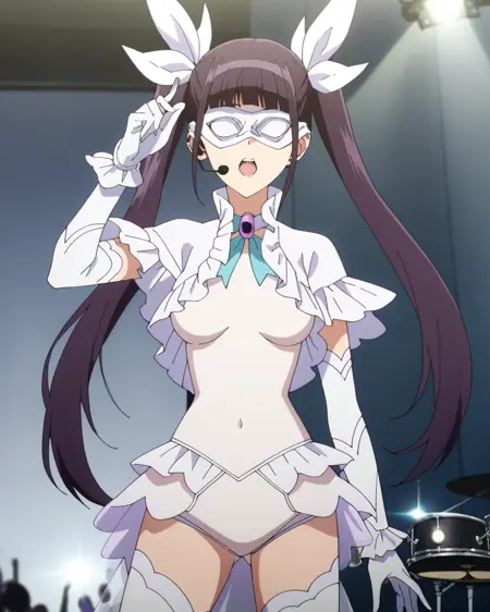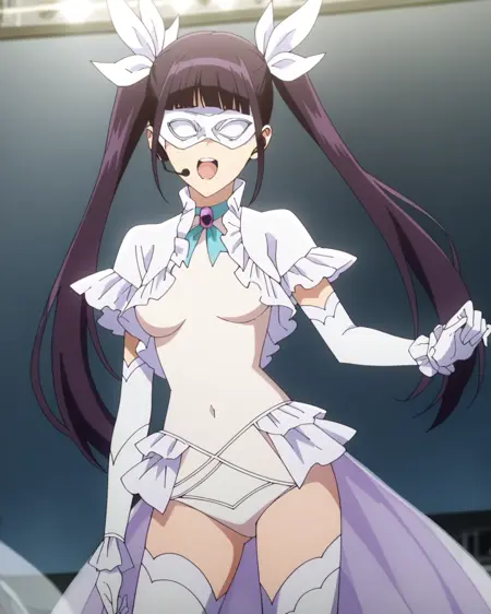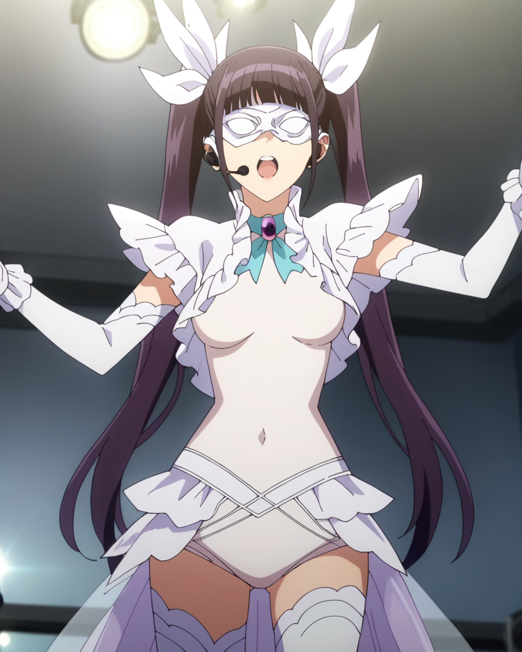 舞台装,面具,发带,丝带,项圈,双马尾,手套,肘部手套,耳机,胸部,过膝袜,