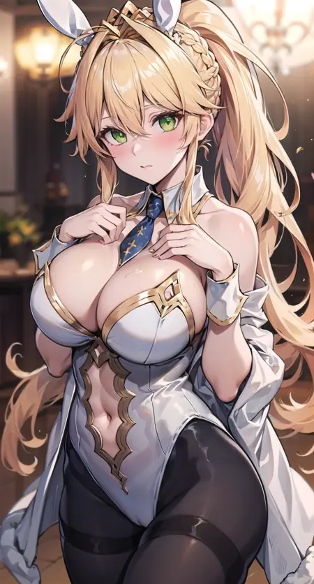 PS:You can use it as a character lora,suggest promt: bunnyArtoria hairstyle, outfit-bunnyArtoria, 1girl, breasts, solo, blonde hair, green eyes, french braid, long hair, large breasts, cleavage, ponytail, sidelocks, bangs, navel, looking at viewer, bare shoulders, braid, hair between eyes, bunny pose, tiara, ahoge,