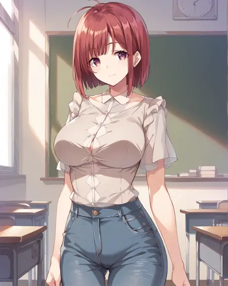 Trigger : midori oribe,red hair,short hair,purple eyes,large breasts,