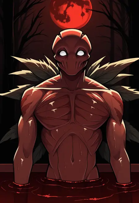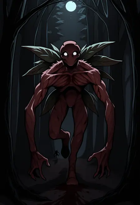 BrackenLethalCompany, white eyes, monster, wings, leaf