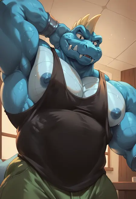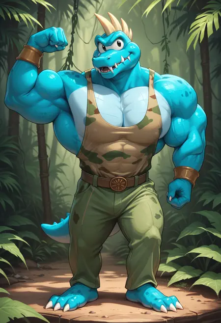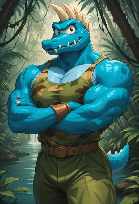 触发词(PDXL): krusha、蓝色皮肤、尖牙、爬行动物、鳄鱼、拟人