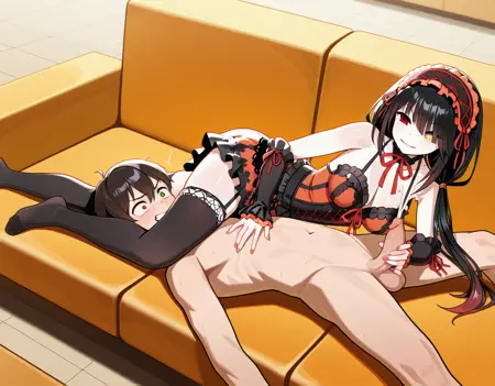 from above, from side, clothed female nude male, handjob(add negative word), nipple tweak, nipple stimulation,