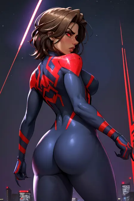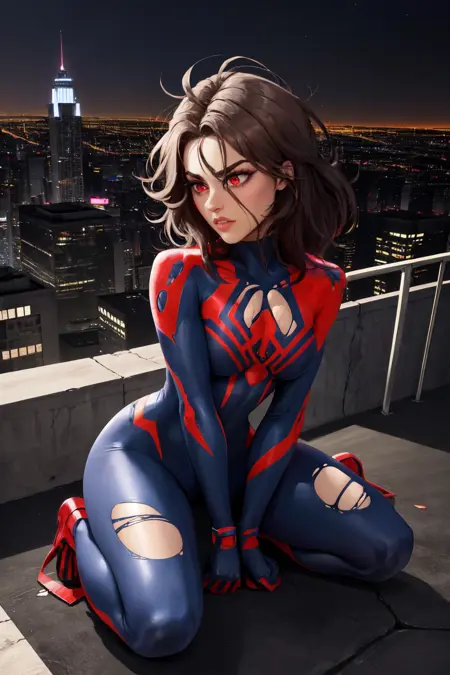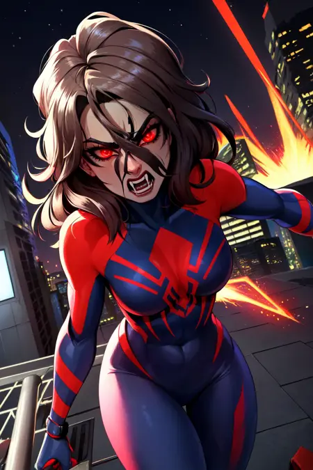 부정 프롬프트에는 "Torn bodysuit, cape" 또는 "claws, spider web, spider web print, arm blade"를 추가해 보세요. 너무 극단적인 결과가 나올 경우입니다. 거미 로고가 다른 복장으로 약간 번지지만 아직 좋은 해결책을 찾지 못했습니다. 다만 가중치를 낮추면 도움이 될 수 있습니다.