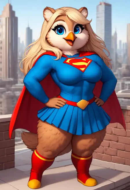 私は白いFederpelzのスーパーガールを欲しがりましたが、実際には薄茶色と白の組み合わせでした。そこでプロンプトに「(white federpelz:1.5)」と記述したところ、この結果が得られました。