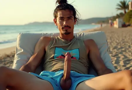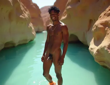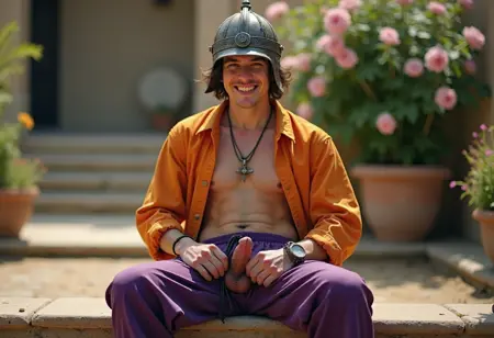 "cutfullynudeFlux", "he is fully nude" — 何も着用せず、ペニスが見えている男性
