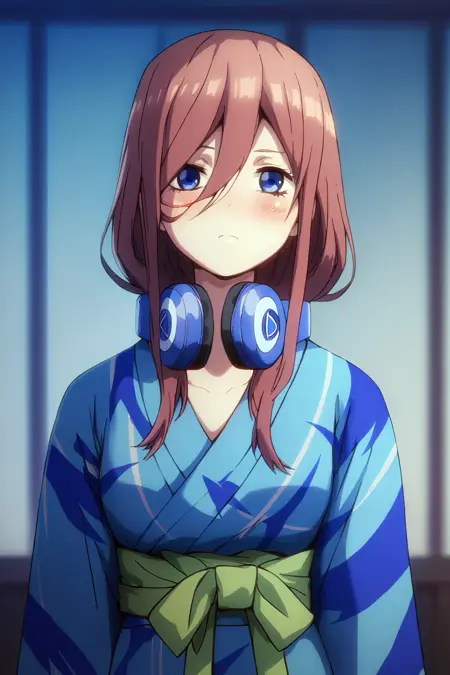 Trained on PonyXL on 113 images of Miku Nakano. Every image is upscaled with Gigapixel AI and photoshopped for perfection for the different outfits.
