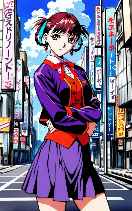 | 训练词汇 | bangs, brown hair, red eyes, ribbon, jewelry, hair ribbon, braid, earrings, kurisutaruxx earrings, hair rings已复制! sukurusora outfit, jacket, uniform, vest, skirt, socks, white socks, loafers, brown footwear已复制! fasshonarry outfit, long sleeves, jacket, open jacket, cropped jacket, dark red shirt, skirt, miniskirt, grey skirt, shoes, mary janes, brown footwear, black socks已复制! |