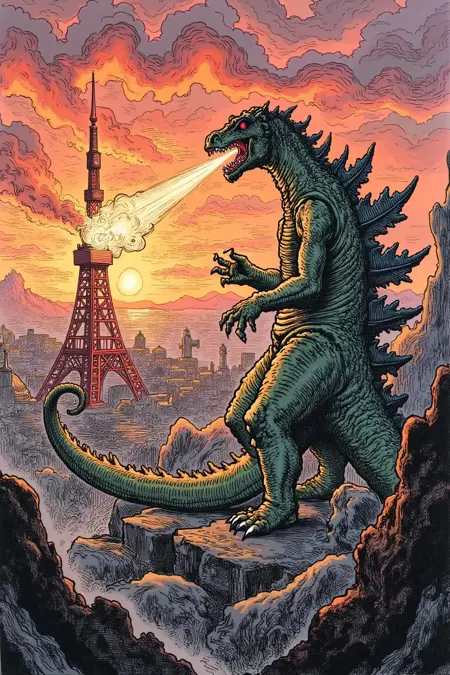 LoRAはトリガー「gusdore1」がなくても強力な効果を発揮しますが、「illustration」というワードがなければ、Fluxはほとんどのプロンプトに対して写真スタイルの画像をデフォルトで生成します。