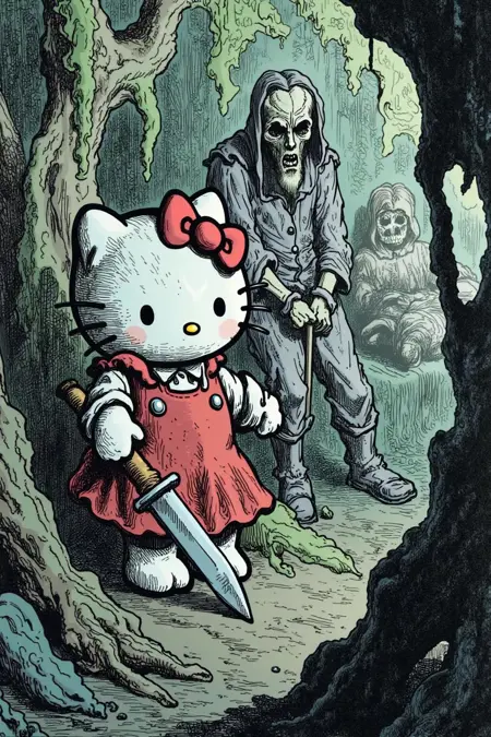 使用古斯塔夫·多雷为塞万提斯《堂吉诃德》创作的最佳作品进行训练:https://commons.wikimedia.org/wiki/Category:Illustrations_by_Gustave_Doré_in_L'ingénieux_hidalgo_don_Quichotte_de_la_Manche_(1863)