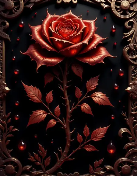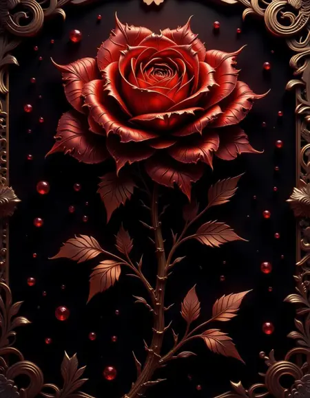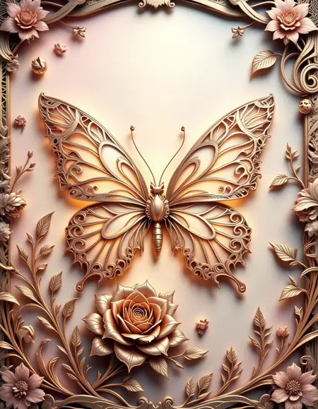 プロンプト構成:私のプロンプトを参考にしてください。以下のような構造になっています:色と上記のキーワードを使って対象を記述し、その後彫刻が設置されている背景を記述します。装飾的な要素やフレーム・縁取りを説明してください。