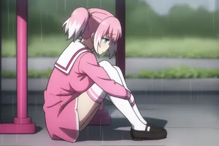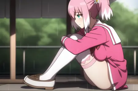 <lora:KneesToChest-v1-03:0.4>, sitting, knees to chest, breast press, hugging own legs, medium breasts, nude, sideboob, [from front/from side/from back],