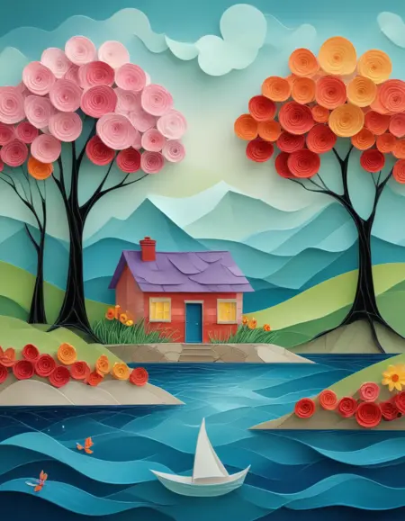 SDXL은 이미 종이 말아서 장식하는 스타일을 알고 있지만, 이 버전에서 제가 좋아하는 점은 독특한 색상 팔레트입니다. 하늘색을 기본으로 하여 흰색, 주황색, 노랑색, 녹색, 빨간색을 액센트로 사용합니다. "Paper quilling"을 프롬프트에 추가하면 말아진 종이의 느낌을 더욱 높일 수 있지만, 없어도 잘 작동합니다. 또한 로우 폴리 아트와 유사해 보일 수도 있습니다.