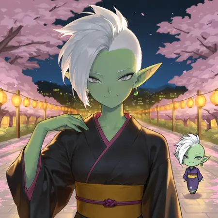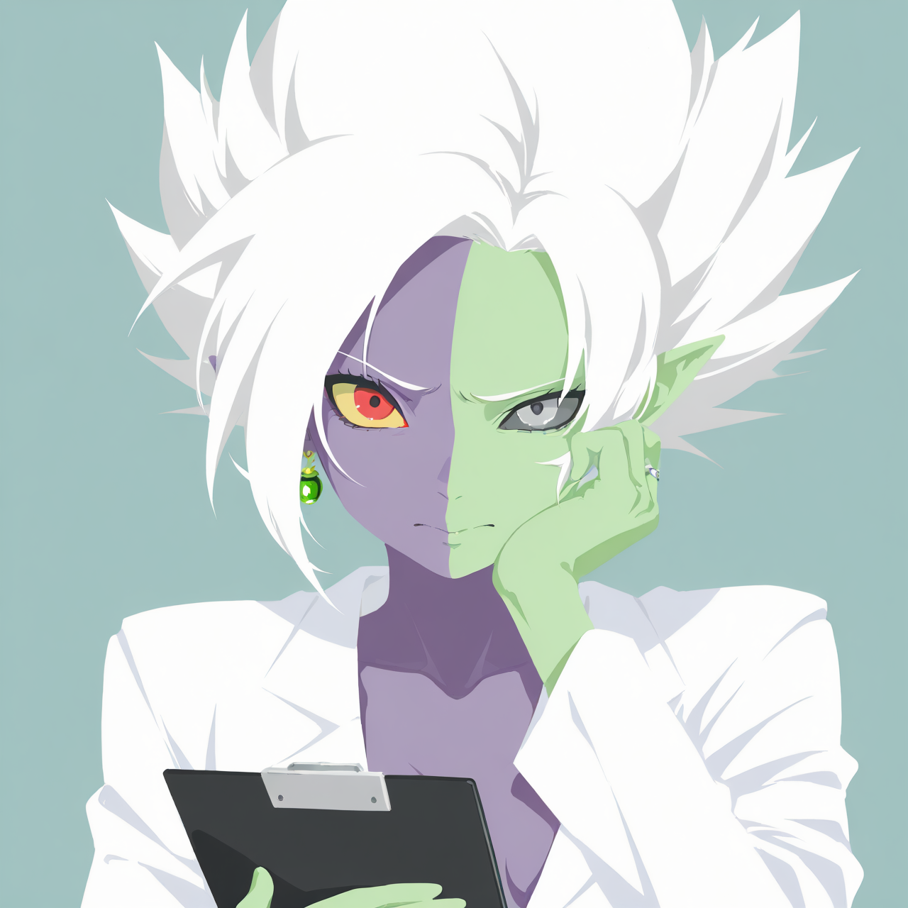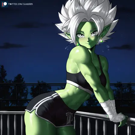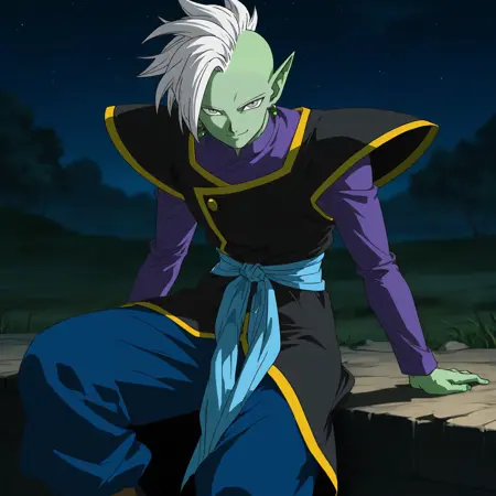 외모 태그: 색상 피부, 녹색 피부, 송곳니 모양 머리카락, 흰색 머리, 수퍼 사이어인, 회색 눈, 날카로운 귀, 포타라 귀걸이, 녹색 귀걸이