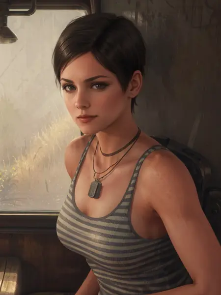 モデルは「ビーニーを被ったポストアポカリプス風の衣装を着ている」、「タンクトップとドッグタグを着用している」、「アーマードタンクトップとスカーフを着ている」というプロンプトを認識している必要があります。
