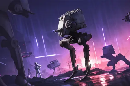 큰 AT-AT들은 주로 중앙으로 진격했기 때문에, 전장 가장자리에서는 작은 정찰 보행기에게 포위당하고 말았다. 아마도 이 작은 보행기는 큰 친구들을 둘러싸는 것을 막고 싶었나 보다.